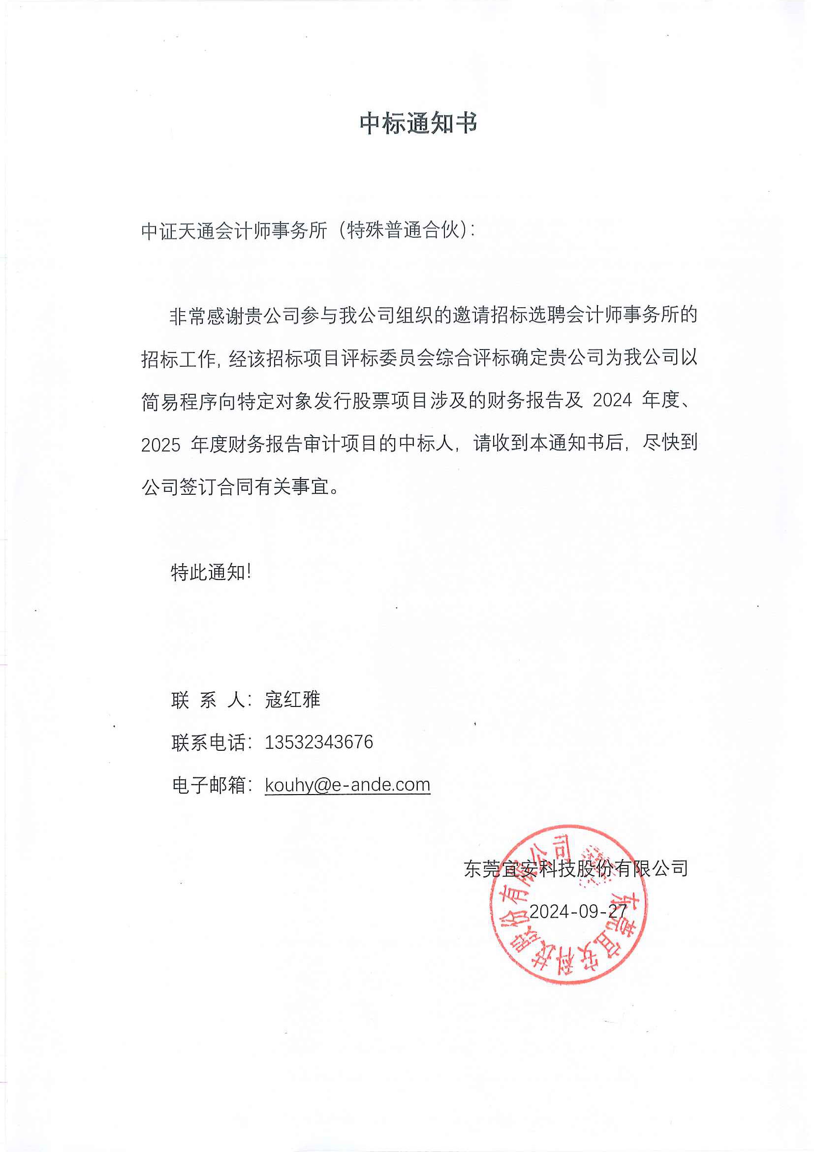 Index > > 中標(biāo)通知書